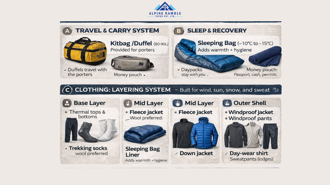 Focus on warmth, breathability, and friction-free layers. The right system beats the most expensive item.